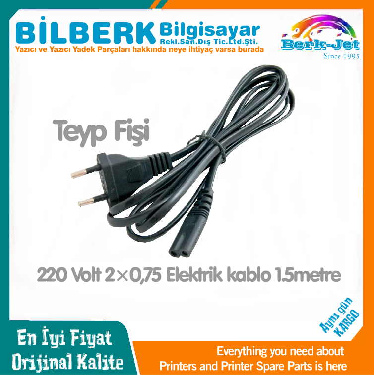 İngiliz Uçlu Teyp Fişi 1.5metre 2×0,75 Kordon 220 Volt Elektrik Kablo Teyp Radyo Adaptör Işıldak Yazıcı Adaptör Cord Cable